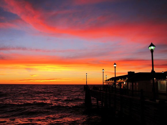 Orange and yellow sunset at Redondo Beach Pier, Redondo Beach pier sunset