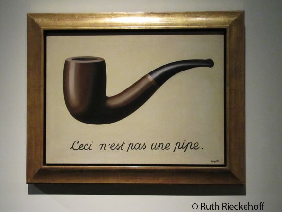 I love the one by Magritte, “This is not a pipe”, because of the logic behind it. It is not a pipe, but a drawing of a pipe. Very philosophical.