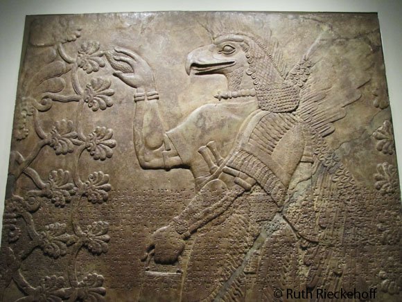I stood astonished before these carved stone panels. They used to decorate the interior walls of the palace of ths first Assyrian king. This king reigned from 883 – 859 BC. I don’t know what is more impressive, the age of the panels, the detail used in the pictorials or the fact that we can appreciate something from such a distant land in Los Angeles.