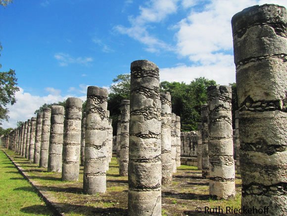 There are many columns next to the Temple of the Warriors. Experts believe these columns supported a big roof at one moment in time.