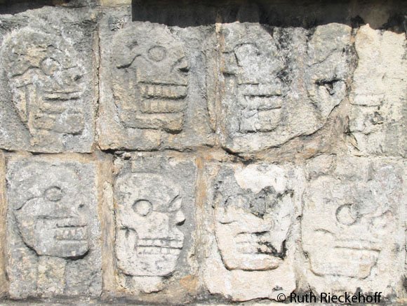 This is a small platform covered in skulls. It shows influence from Central Mexico.