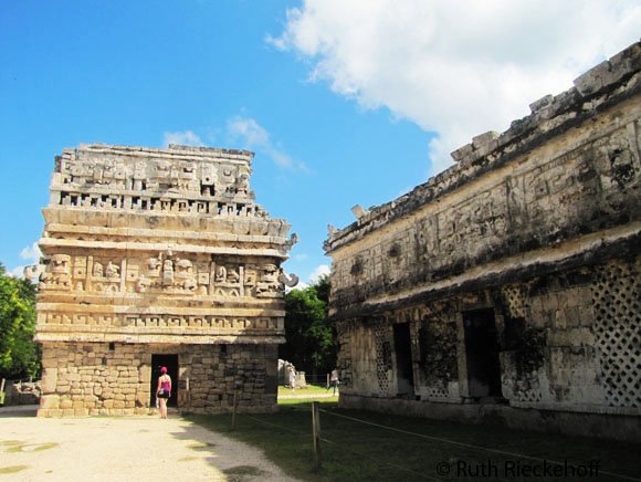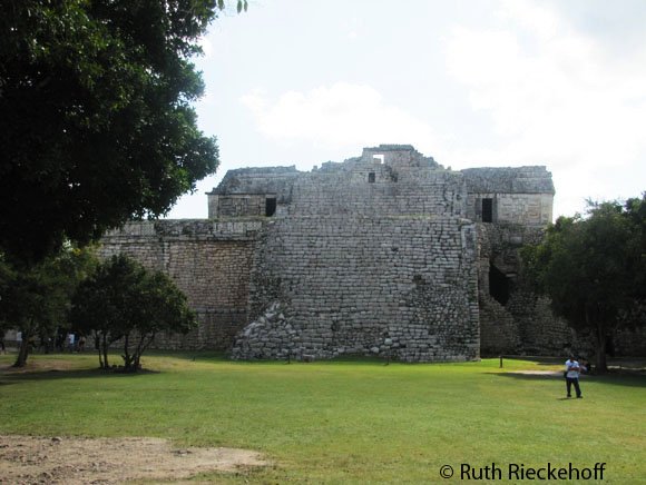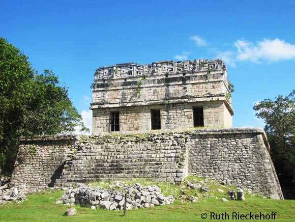 This is one of the best-preserved buildings in the complex. The name comes from the red pigment found inside the structure. Its Maya name is Chichanchob may mean “small holes”. Experts believe the original Maya name comes from the intricate carvings at the top of the building (more Puuc style).