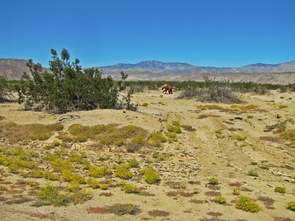 Keep driving north on Borrego Springs Road and turn left on San Ysidro Drive to find more sculptures. There is a second large cluster at the intersection of Borrego Springs and Henderson Canyon.