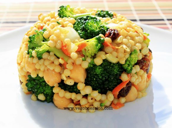 Curried Maftoul with Broccoli