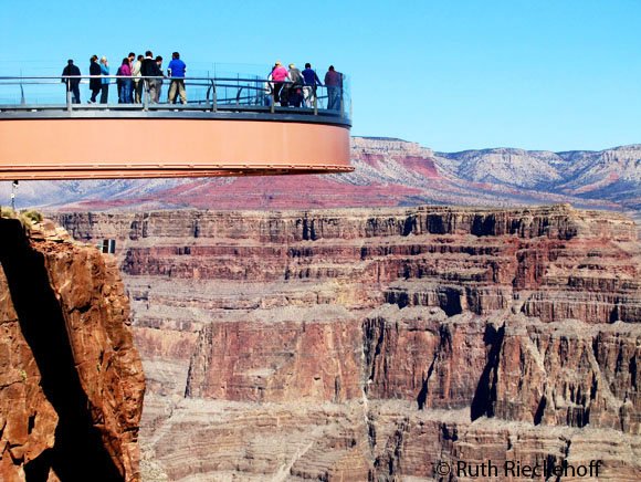 I am referring to the Skywalk. Yes, that transparent horseshoe-shaped bridge hanging over the Grand Canyon.  You must have seen it before.  It made news worldwide when it opened to the public in 2007.