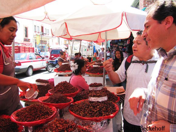 That’s a nice looking market! Food looks great too, though I don’t know about the chapulines…