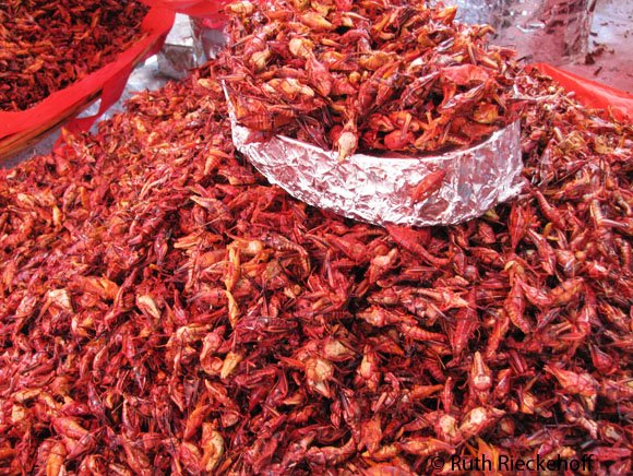 Is it just me or are those grasshoppers huge! This looks like a market I would love to explore.
