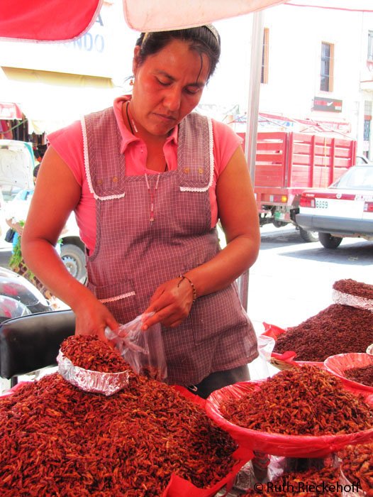 Imagine eating in a place like this: thick smoke covers the entire room, tons of people are walking by offering you different goods, there are no plates, you have to eat with your hands, insects are part of what you are eating. All these and more can be experienced at the Mercado 20 de Noviembre in Oaxaca.