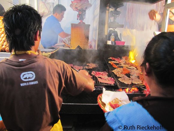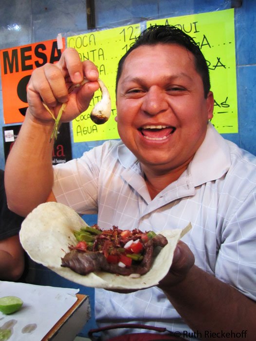 While your meat is cooking, walk a few steps where the legume stands are located. If you buy from one of them, drinks, vegetables or other sides, they give you a table to eat. This is the place to order tortillas, grilled green onions, and chilies.