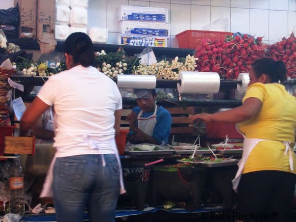 Appreciate what you are eating since you are trying the freshest ingredients in Oaxaca. You can always end your meal by buying fruit or sweet bread. Or, there is the option to cross the street to the Juarez market to have traditional ice cream and agua fresca made with natural ingredients.