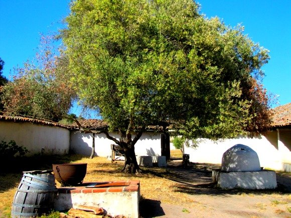 By crossing the walls of the Mission, you will encounter courtyards filled with artifacts used to fulfill the needs of past inhabitants. There are ovens, stoves, grain mills, and olive presses.
