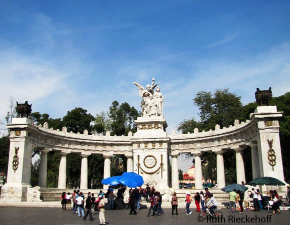 When “running away” from the “criminals”, we got into Alameda Park. A Carrara marble monument honoring the memory of Benito Juarez is located around the park. A group of young people was cheering for their country. It was so fun to watch.