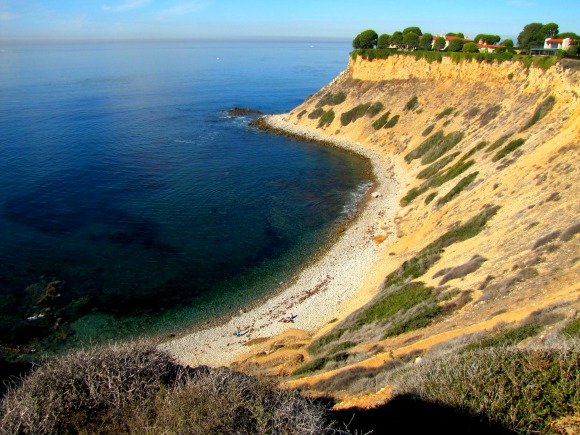 This cove is ‘next’ to Honeymoon Cove. Drive south on Paseo del Mar and you are going to notice it to the right (the street narrows). This is an interesting area since a landslide happened here. Again the cove is not seen from the street. You have to get out of the car and walk towards the edge of the cliffs.