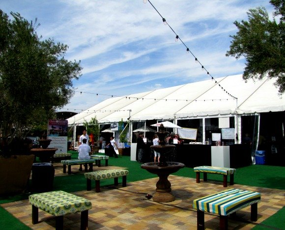 The venue consisted of two big white tents separated by an open air patio. The decoration was tasteful and bright. There was a good balance of open spaces, areas to sit and tables to place food while eating. Everything was very clean and the staff was eager to respond questions. It was hot and stuffy inside the bigger tent but, being in the desert, there is not much that can be done (plus people were having a good time anyway).