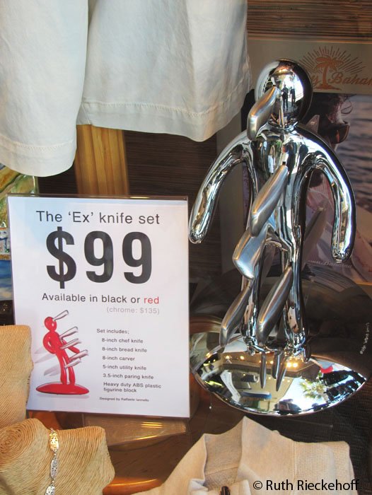 When I say the odd, I am saying it in a nice way.  I am referring to those little things that add a hint of coolness in the most unexpected places.  What about a pink, old car? Or a multi-colored buffalo statue?  Without doubt the oddest article was offered in one of the waterfront stores.  It is called the “ex knife set”.  It consists of a knife holder shaped as a person.  The holder contains some holes where you insert the knives.  Basically, you get the feeling of stabbing your ex every time you use it.  Gulp. I guess there are those kinds of problems on islands too.