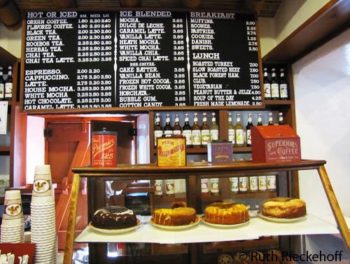 Some of the buildings have been converted to businesses. However, these are not typical stores or places to eat. The charm, history and character are still there. Take a look at the outside and inside of this coffee shop.
