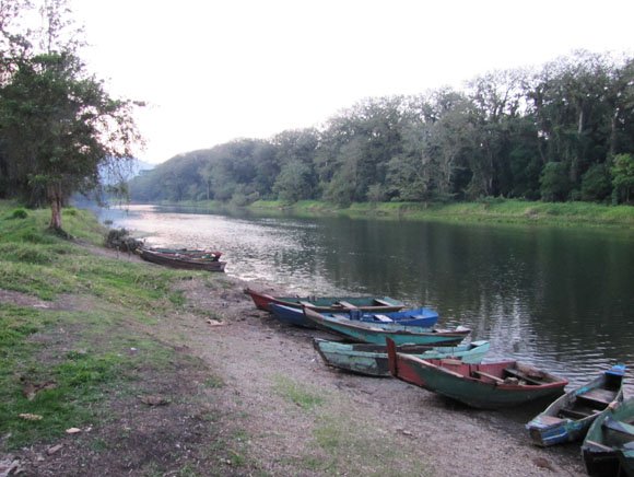 We walked to a canal located between the small town of Pena Blanca and the lake.  In there, we found small wooden boats.  The six of us divided in two boats.