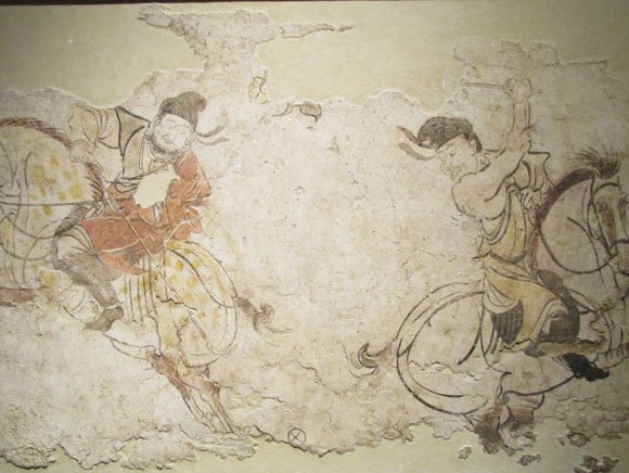 Now, the Tang dynasty tombs are very different from their predecessors. They were stocked with riches tied to the trade of exotic goods along the Silk Road. Dazzling gold ornaments, tomb guardians, a mural depicting a game of polo, and many other luxuries illustrate the taste of Tang elites and the era’s connection with the West.