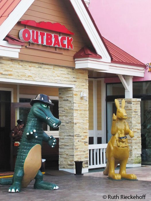 I don’t know if I was too naïve or what.  I was really expecting a wide and elegant boulevard lined with cafes, boutiques, artisanal shops, and funky restaurants.  In reality, the road traversing the area is composed of two lanes and you only see the entrances to the hotel’s driveways.  Plus, there are signs alerting people to be careful with the alligators in the areas close to the lagoon.  This is one of the many facts resorts like to use to keep people inside the properties.
