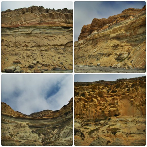 So, we made it back to Flat Rock and started to walk north thru the Torrey Pines State Beach. This is another way to appreciate the reserve since the cliffs are very colorful and full of crazy formations. To me, the view from the bottom is fascinating since it is almost impossible to determine what lies at the top.