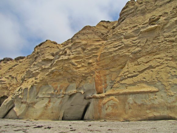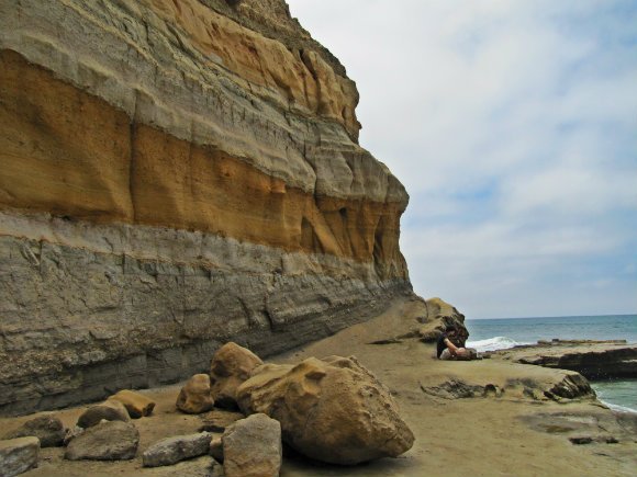 So, we made it back to Flat Rock and started to walk north thru the Torrey Pines State Beach. This is another way to appreciate the reserve since the cliffs are very colorful and full of crazy formations. To me, the view from the bottom is fascinating since it is almost impossible to determine what lies at the top.